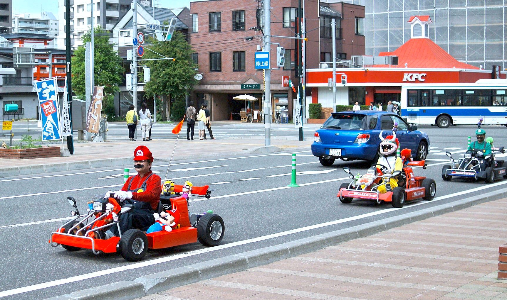 徜徉在東京街頭的瑪利歐賽車,是許多外國觀光客到日本不會錯過的活動,這種卡丁車(Go-kart,也稱小型賽車)配有 50cc的引擎,最高時速可以到 60公里,讓觀光客一方面可以駕車享受 2小時左右的街頭導覽,又能滿足角色扮演的樂趣。