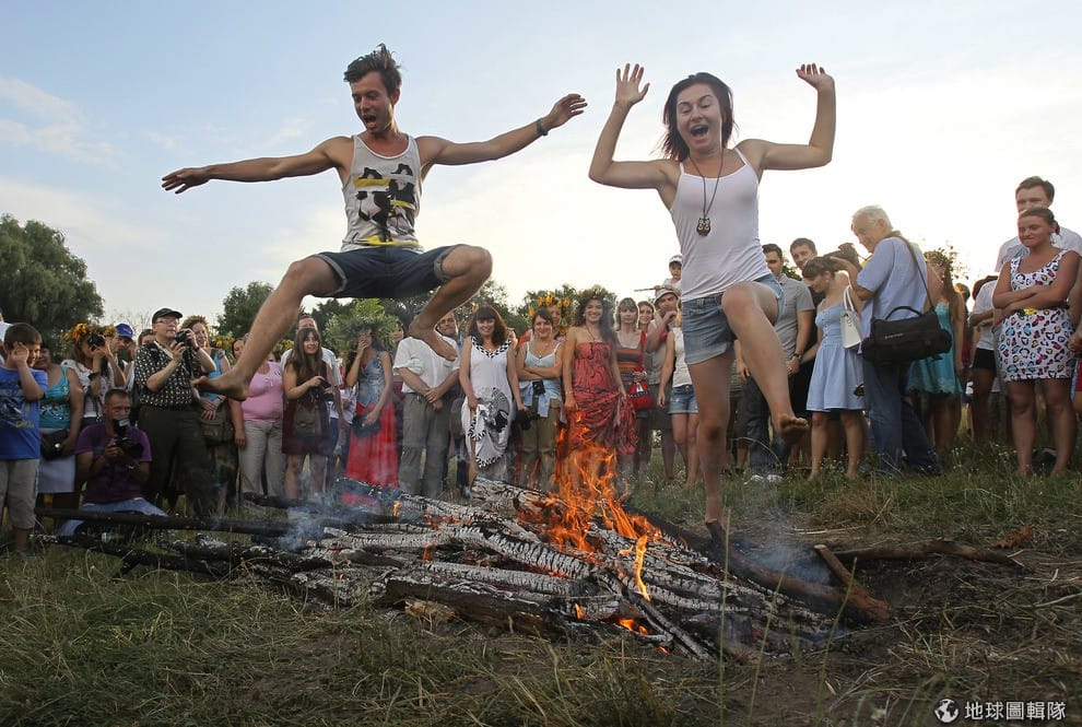 路透社據說,情侶手牽手一起成功跳過火堆的話,戀情將會長長久久。