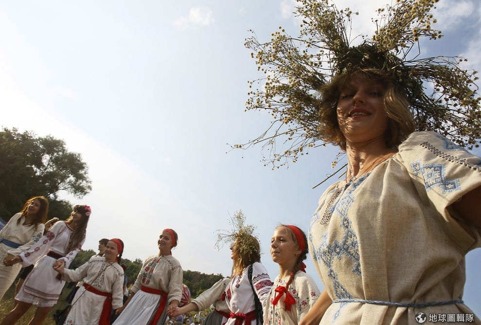地球圖輯隊慶典剛開始,大家紛紛穿上美麗的傳統服裝,手牽手一起跳舞慶祝夏至。