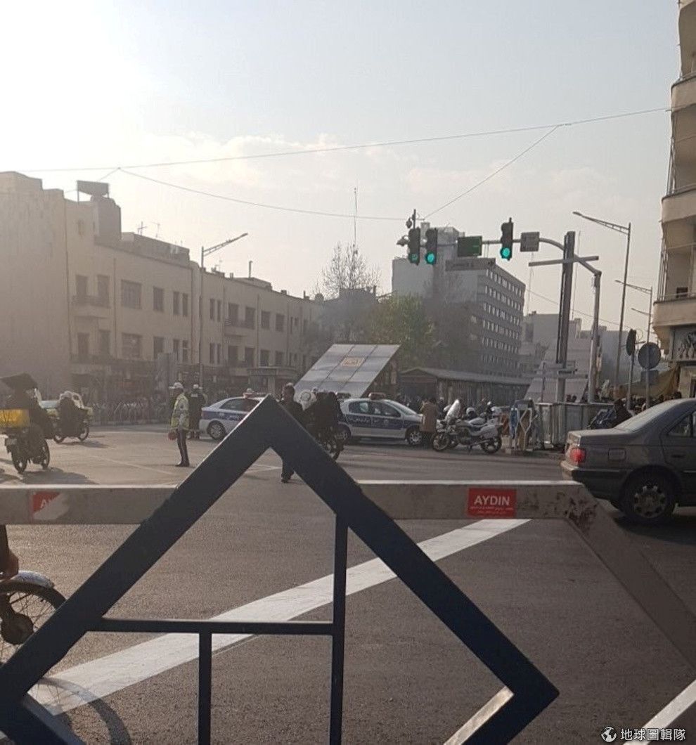 同樣取自上周六(30)的照片中,在畫面另一端,可以看到警察封鎖了德黑蘭大學附近的道路,希望可以藉此控制抗議人潮。