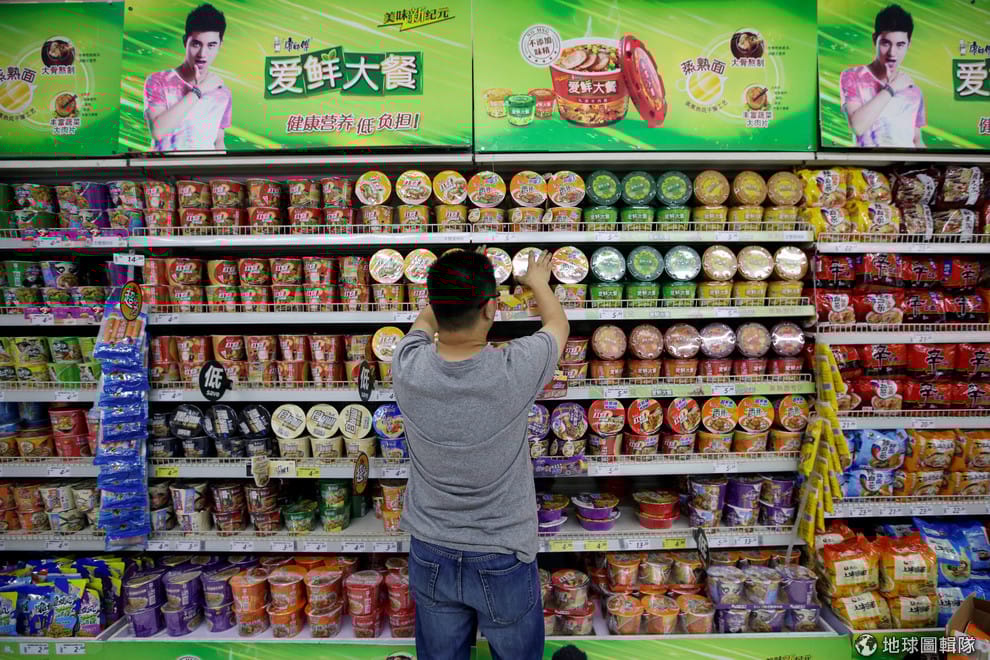 人們在成排的貨架前選購泡麵。隨著經濟發展,中國民眾對生活品質的要求越來越高,不再只求溫飽,反而希望生活能過得有滋有味。
