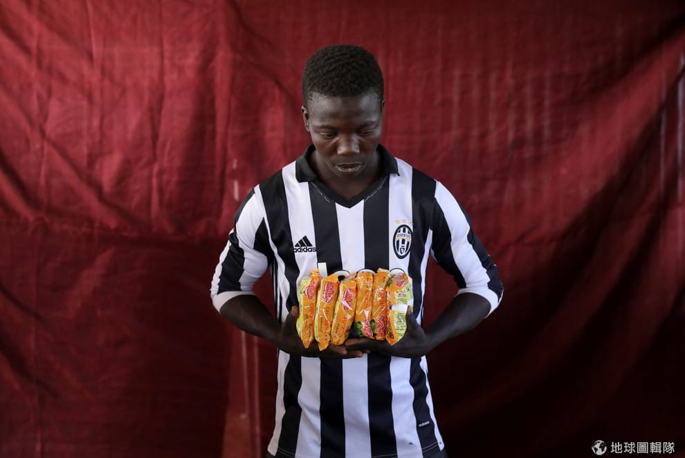 路透社穆哈瑪德(Abachi Mohammed)手上拿著六包雞汁口味的泡麵,等著和別人交換。