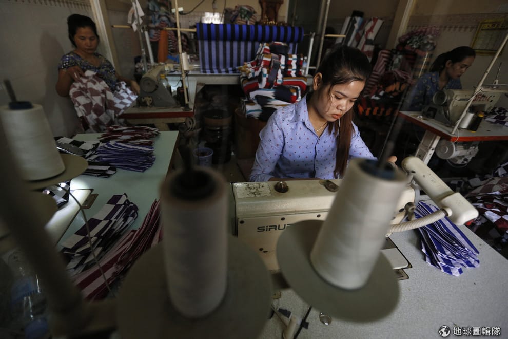 在柬埔寨勞動環境不佳的工廠內,女工們在狹小的空間內縫製一件件出口到海外的衣服。
