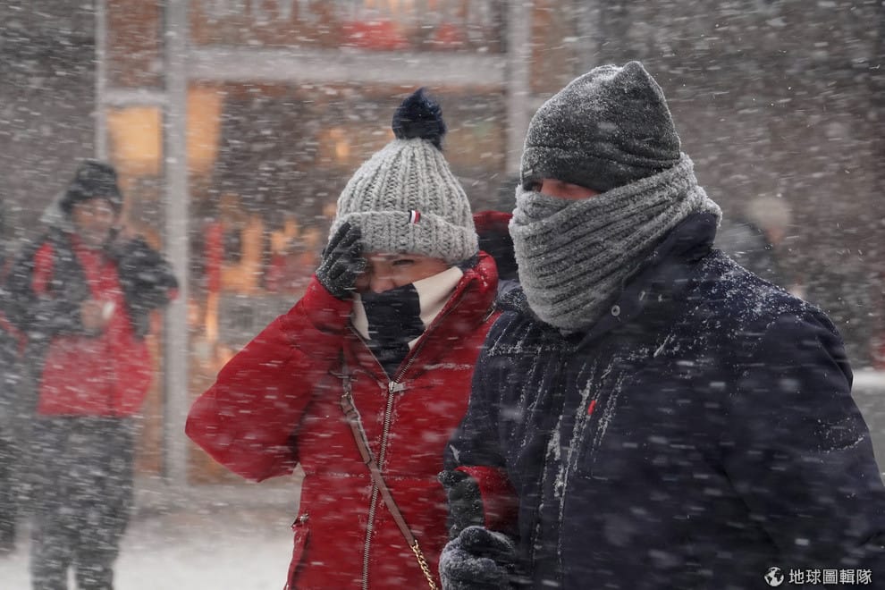 在「炸彈氣旋」的肆虐下,人們就算穿上厚厚的禦寒服飾,上街依然被迎面而來的暴雪打地睜不開眼。