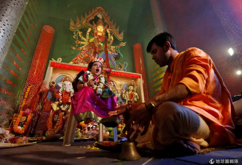 2017年 9月,一名 5歲大的庫瑪麗在印度教的神職人員儀式時,打了一個大大的哈欠。
