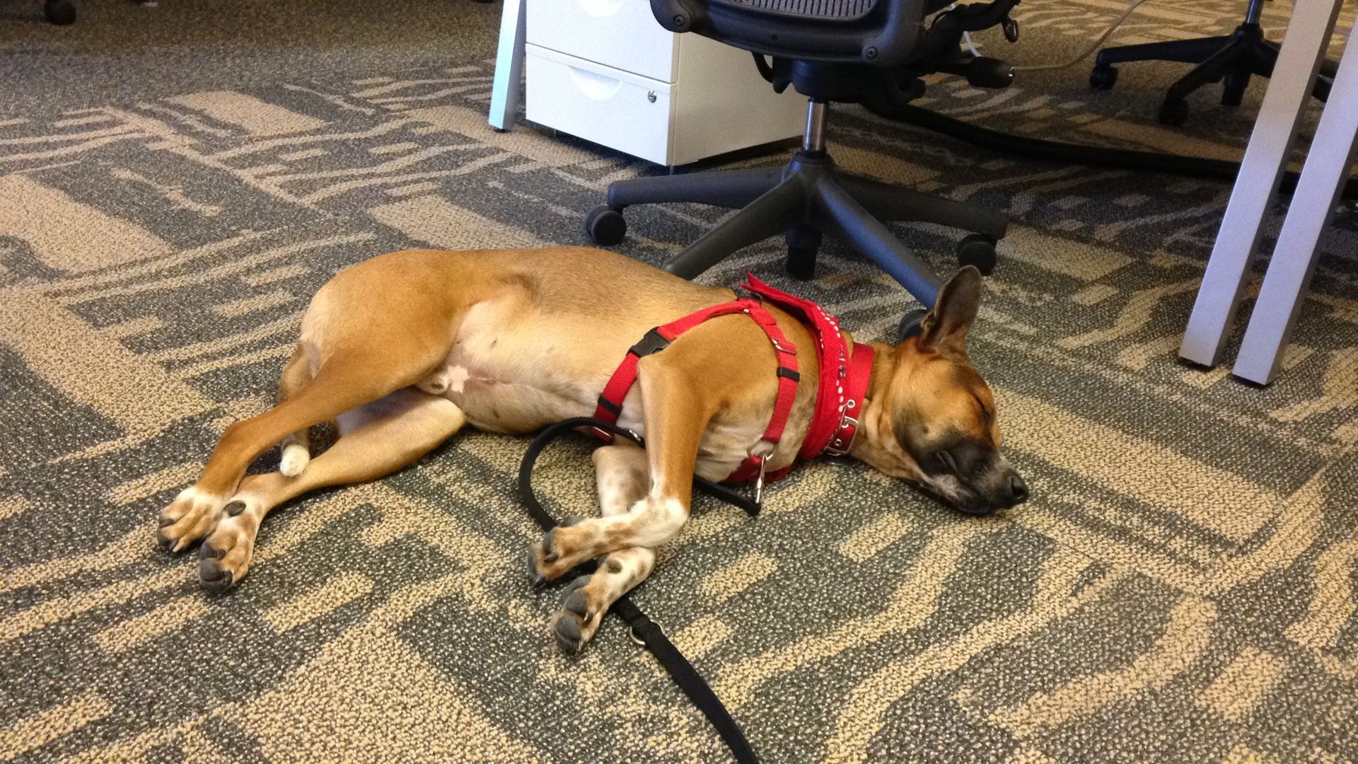 在開放員工帶著毛小孩一起來上班的公司,不時可以在辦公室看到寵物睡到翻天。
