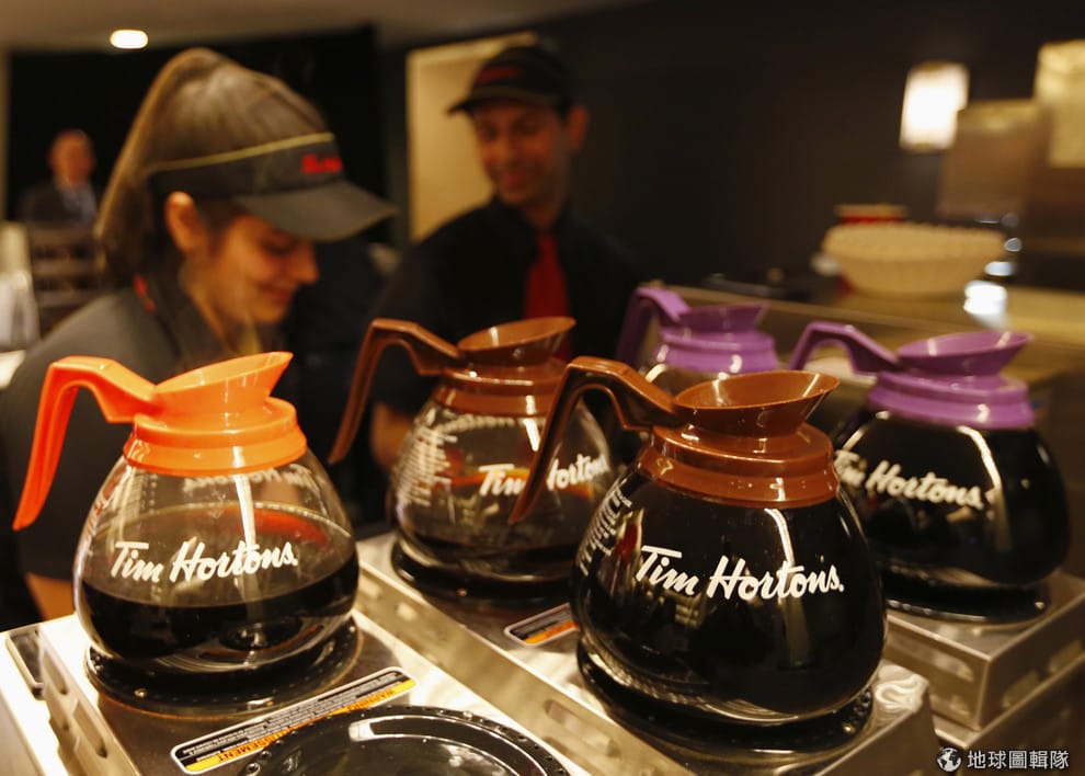 2014年,「提姆霍頓」連鎖餐廳內的員工正在準備咖啡。