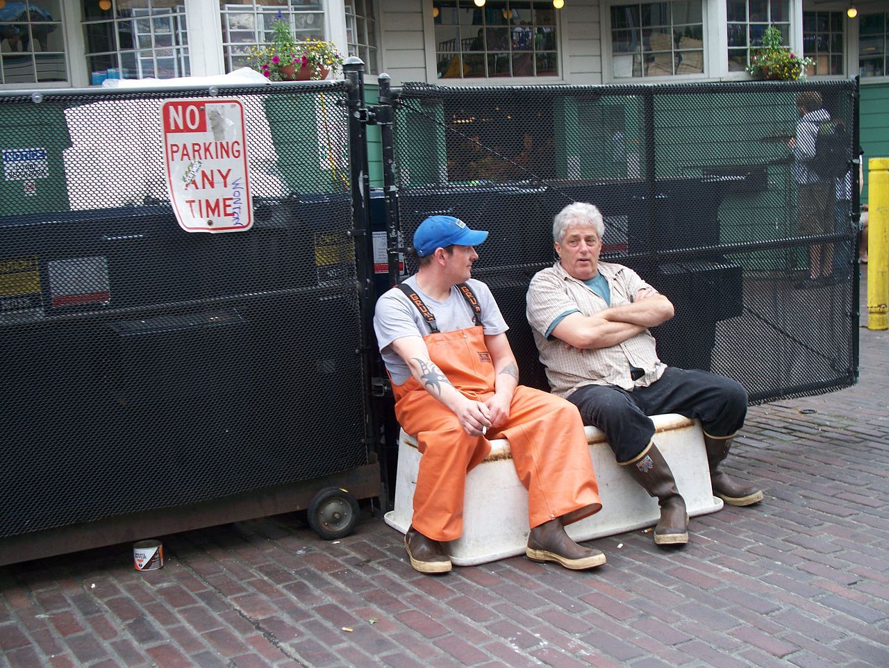 在這張攝於 2009年的照片中,兩名勞工正在享受他們的休息時間。根據安大略省的法規,在勞雇契約沒有提到的情況下,不把休息時間納入薪資計算並沒有問題。