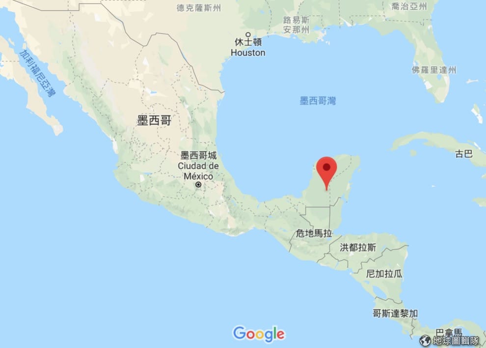 圖中標記處即為猶加敦半島所在地,這裡有許多與馬雅文明有關的遺跡。