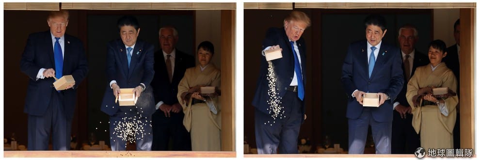 2017年11月,美國總統川普在出訪日本時,來到位於東京、專門接待外賓的赤坂離宮,接受日本首相安倍晉三的招待,兩人在用午餐前先來餵錦鯉。