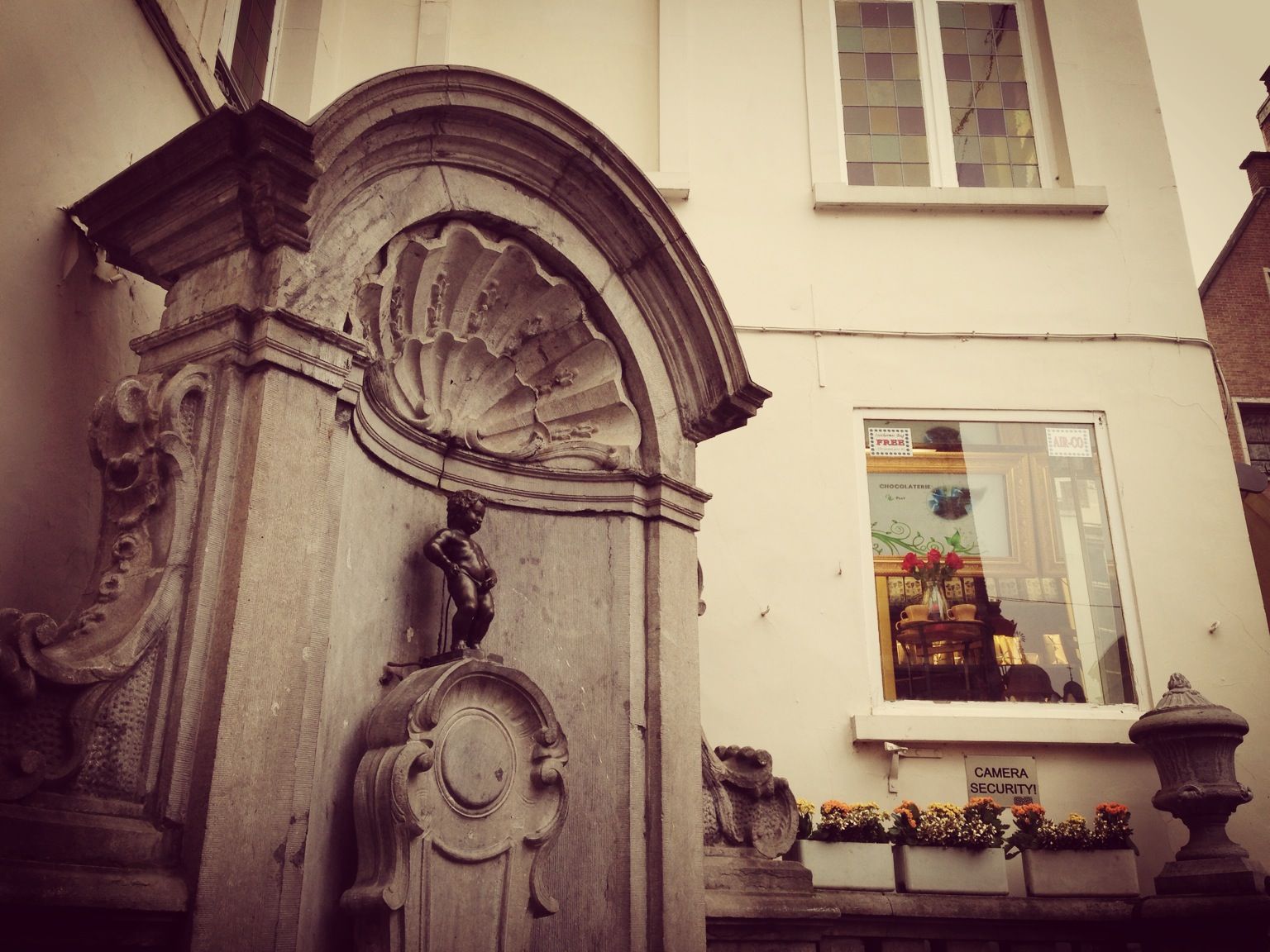 圖為比利時著名國寶尿尿小童雕像,它就位於首都布魯塞爾市區恆溫街及橡樹街的轉角處。它附近有道丁丁漫畫牆,上面被人畫上了難看的塗鴉。