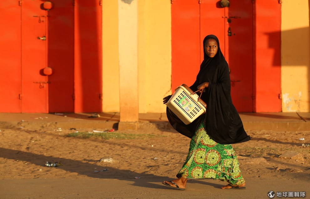 2017年 1月在甘比亞臨海城市薩拉昆達(Serekunda),一名女子在街頭漫步著。