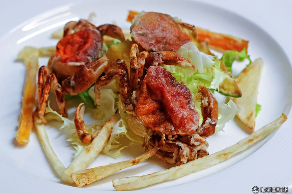 2016年 4月的威尼斯餐廳內,一道經過精心料理的菜餚準備上菜。潟湖地形讓威尼斯成為一個垂釣勝地,每到秋日時節總能看到這類螃蟹料理。
