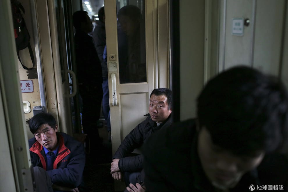 2016年 1月農曆年期間,在石家莊前往上海的火車,攝影師捕捉下返家的移工們。
