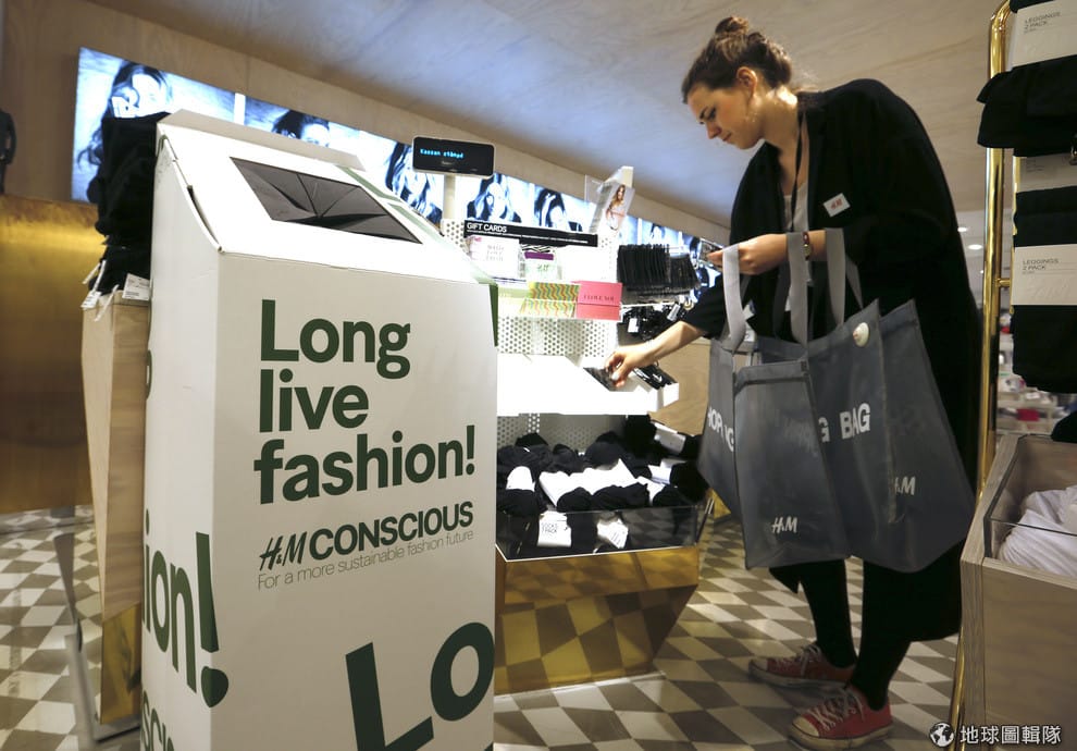 在瑞典斯德哥爾摩的H&M,一名員工正忙著擺放衣服。