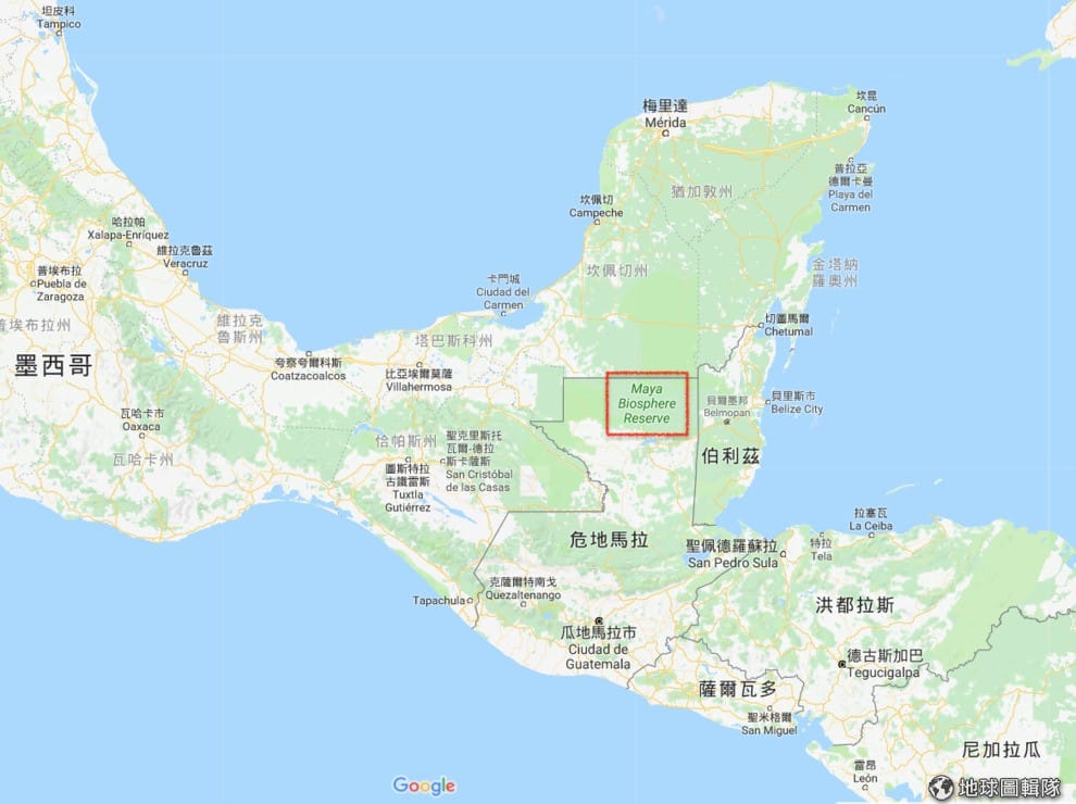 圖中紅框處即為「馬雅生態保留區」,考古團隊預計在這裡進行為期 3年的研究。