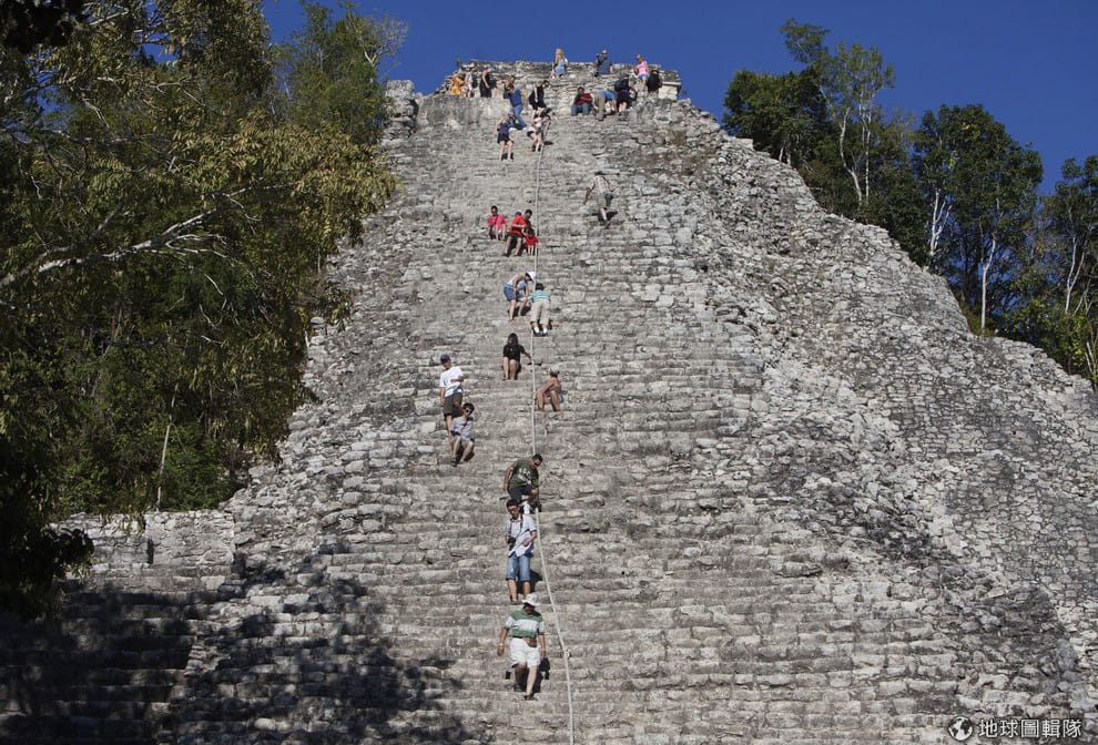 2012年 12月在墨西哥,人們正行走在唯一可以攀爬的馬雅金字塔GrupoNohoch Mul。透過LiDAR,研究團隊意識到馬雅人當年文明化、城市之間交流的程度可能比大多馬雅考古學家所想像的還要複雜許多。
