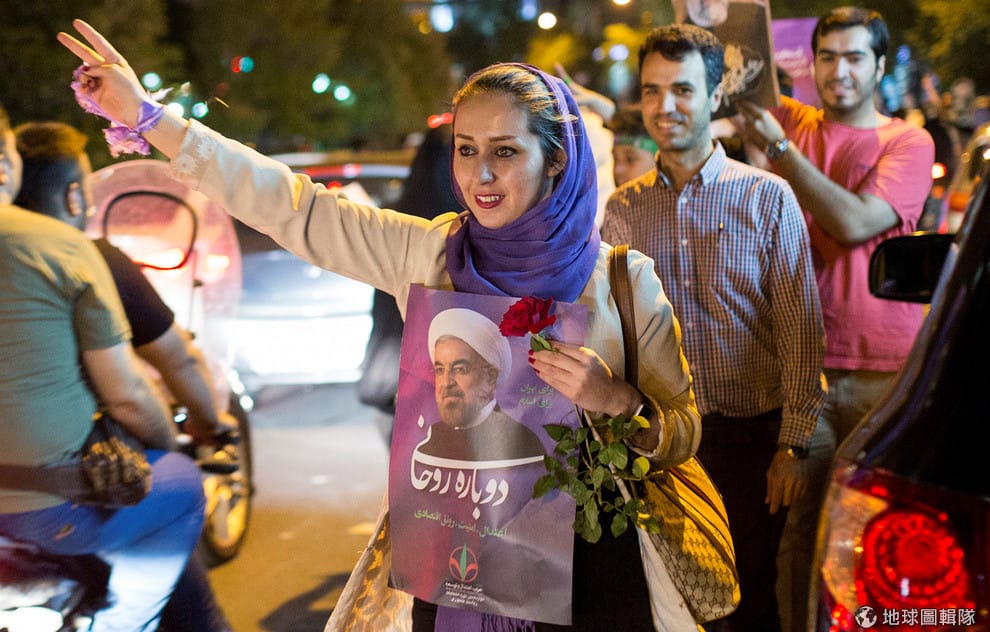 2017年5月伊朗總統大選時,一名伊朗女子拿著總統魯哈尼的海報,支持他連任總統。魯哈尼被視為溫和的改革派,有不少女性選民認為他可以替伊朗帶來變化才投給他。