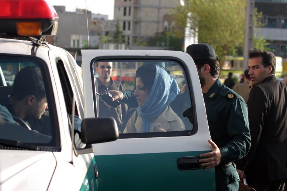圖為 2007年4月,伊朗警察逮捕了一名沒有遵守伊斯蘭著裝規定的女子。