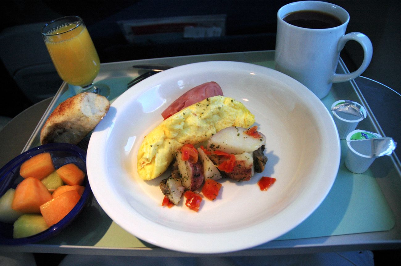 機上餐點的豪華程度,與所搭乘的艙等息息相關。圖為加拿大航空商務艙提供的早餐。
