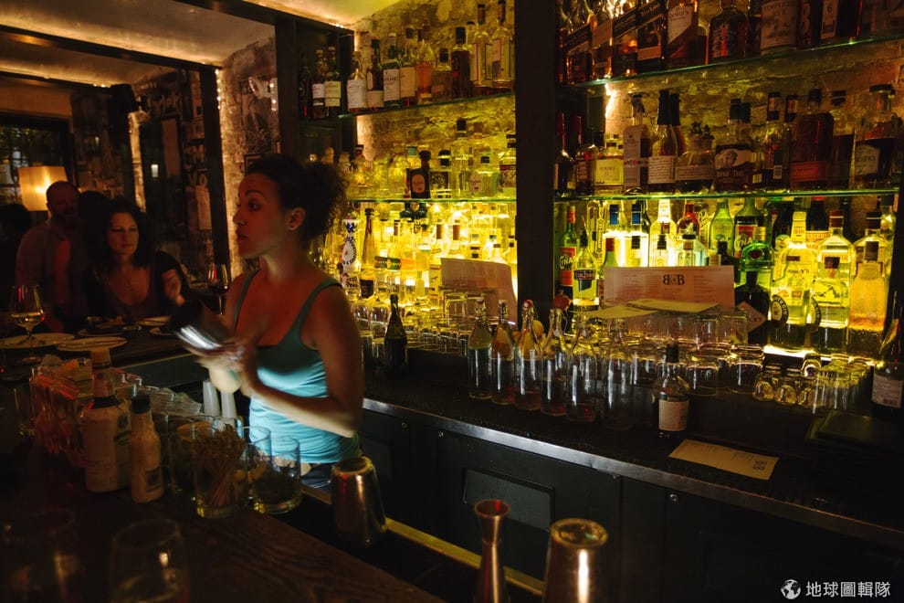 夜晚來臨,離開高架公園後,到附近的時髦餐廳坐坐吧。紐約市內的Bell Book & Candle餐廳內,吧檯人員正在忙著準備客人的餐食飲品。