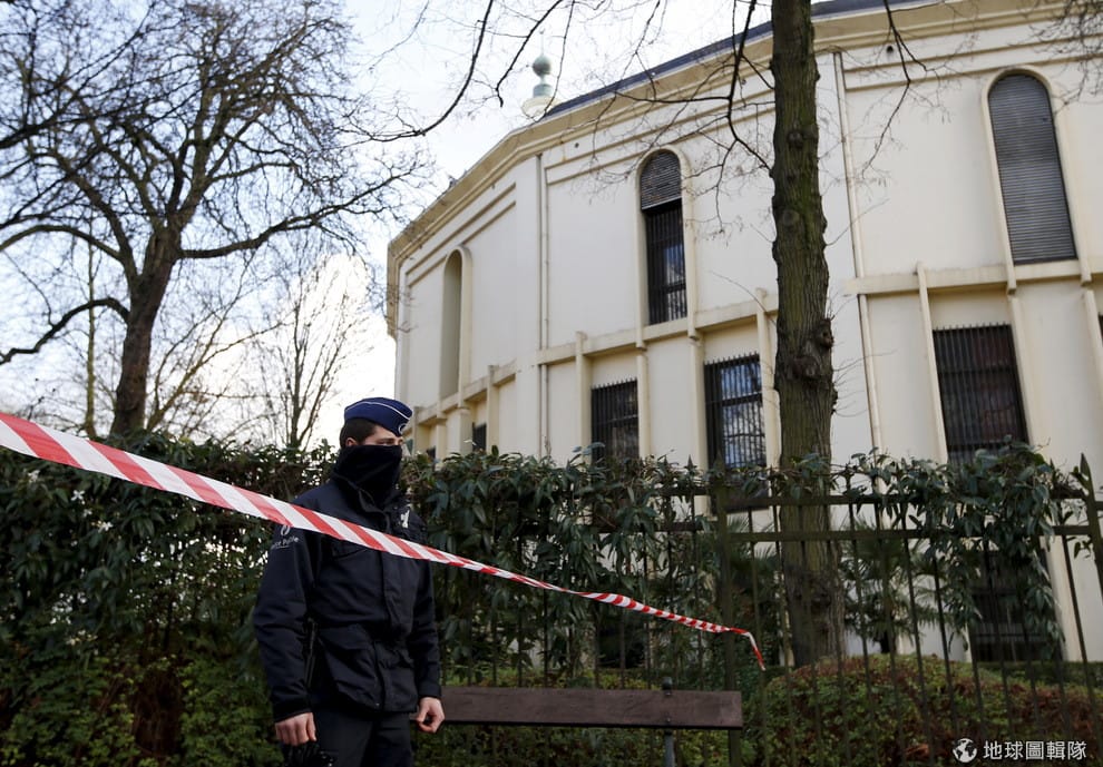 2015年11月,一名比利時警察站在布魯塞爾大清真寺。當天消防隊發現有可疑粉末出現後,出動了數台消防車和不少警察。布魯塞爾大清真寺距離歐盟委員會只有 200公尺遠。