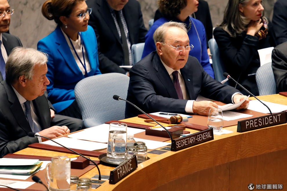 由於去年十月頒布的字母表受到語言學家們的批評,哈薩克總統納扎爾巴耶夫決定要再改一次。納扎爾巴耶夫在 1991年蘇聯瓦解之後,便一直主掌哈薩克政權到現在。圖為 2018年1月,納扎爾巴耶夫總統(右)出席聯合國安全理事會會議時的照片。