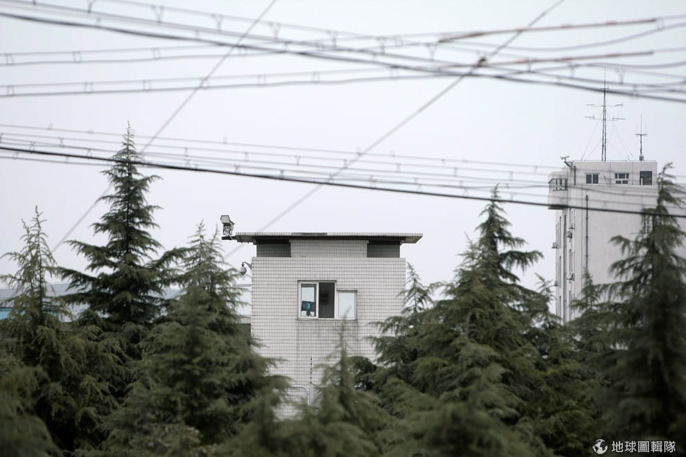 圖為上海青浦監獄的外圍,可以看到高高的圍牆上架起了鐵絲網。
