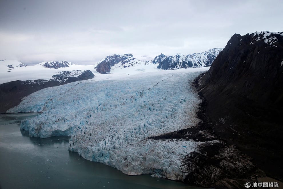 現在有德國的科學家發現,比起地球暖化,挪威的冰河更容易讓甲烷冰分解。圖為 2016年,挪威的布隆史川德冰河(Blomstrand Glacier)。