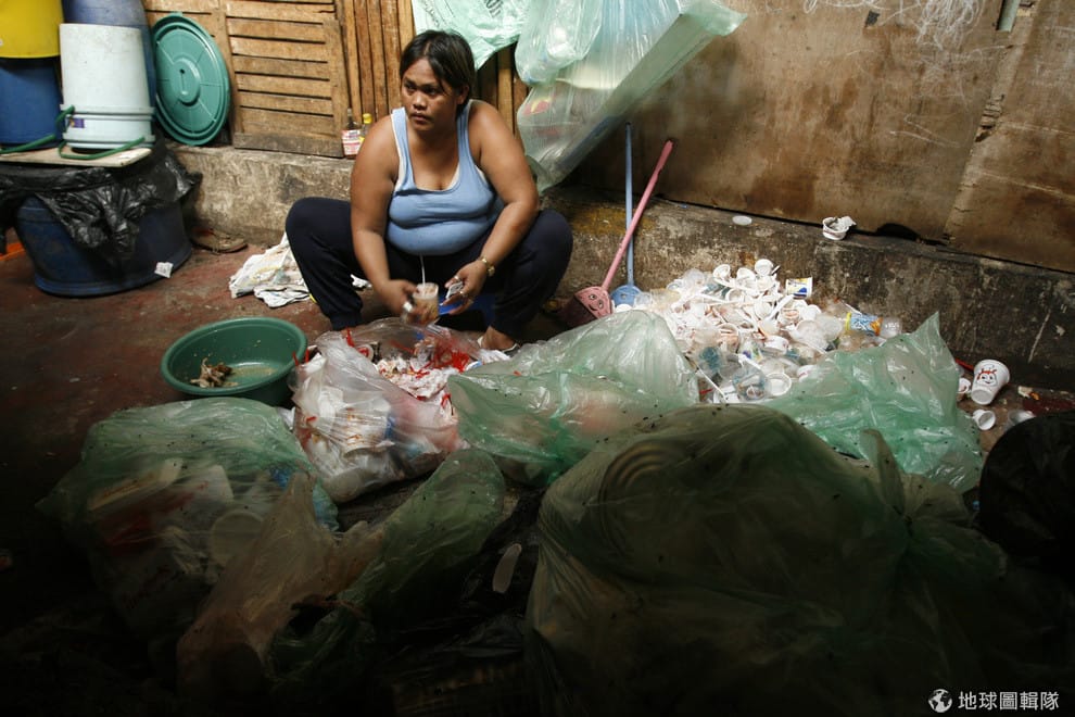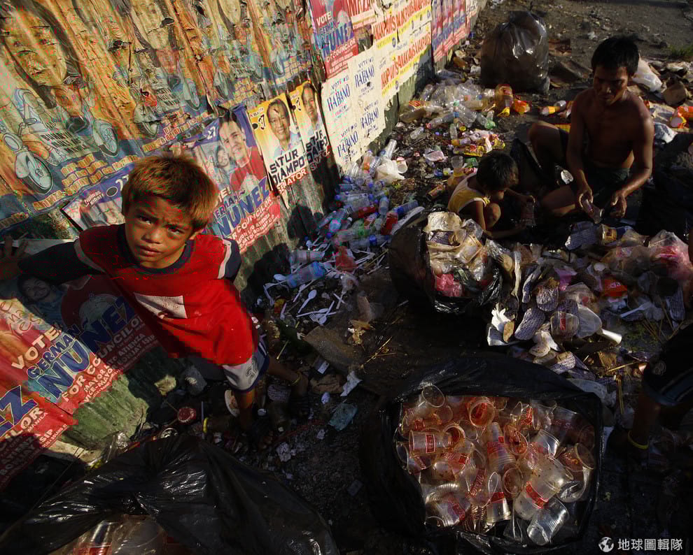 一個家庭正在垃圾場蒐集、分類可回收物品。《路透社》記者指出,在湯都區仍有上千個家庭一天只能靠資源回收賺取 200菲律賓披索(折台幣約 112元)。