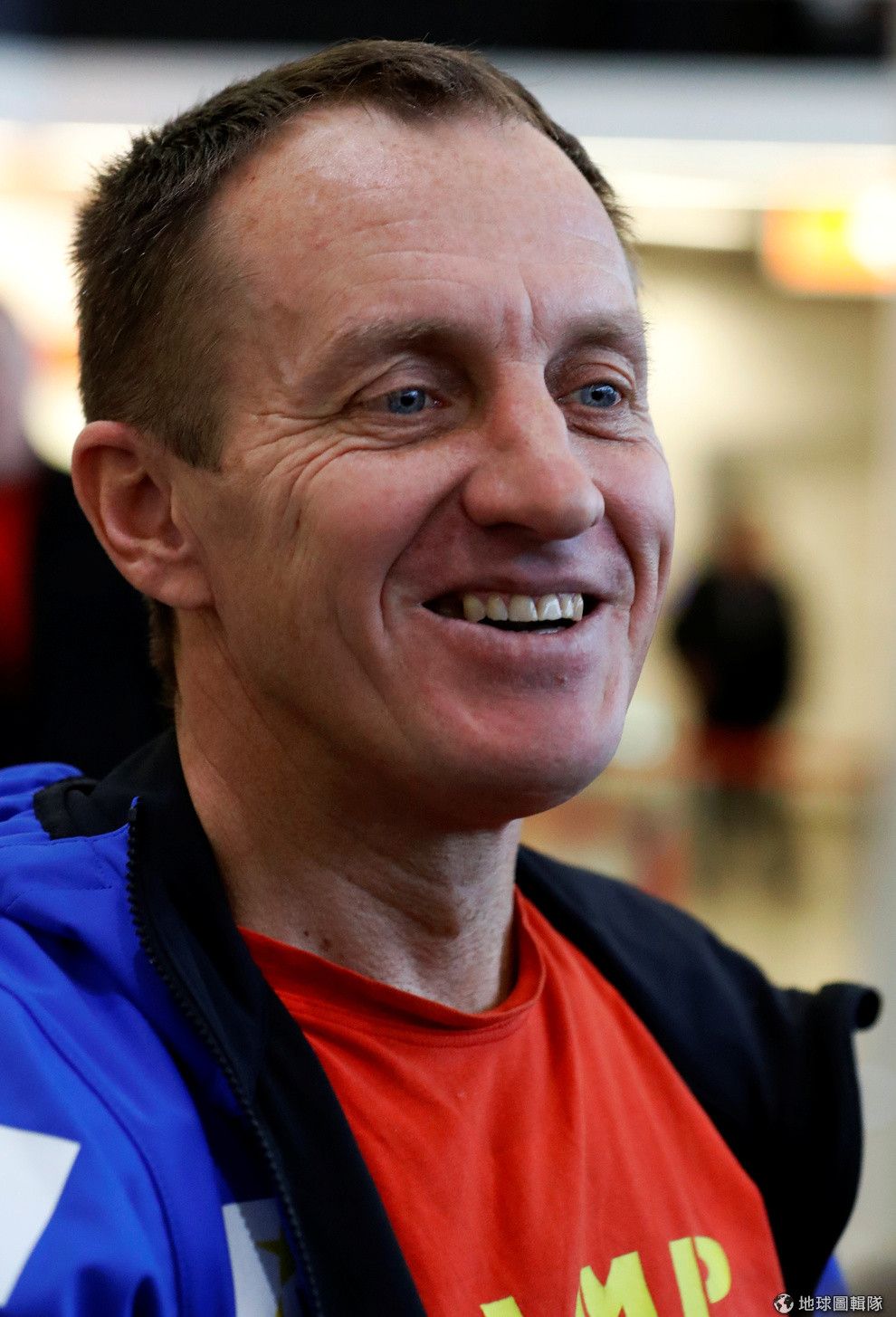 圖為今年 1月底,紐博克準備踏上攻頂K2前,在波蘭機場接受媒體採訪。