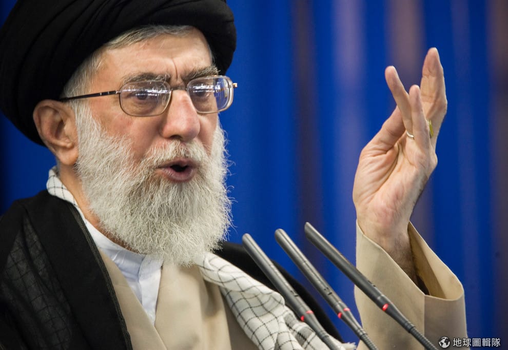 圖為伊朗最高領袖哈米尼,他稱讚伊朗摔角選手卡里米為了更遠大的目標故意輸掉比賽。