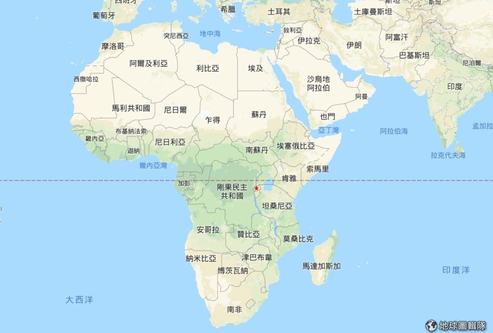 盧安達位於剛果民主共和國的右邊(紅星處),當地第一大宗教是基督教。