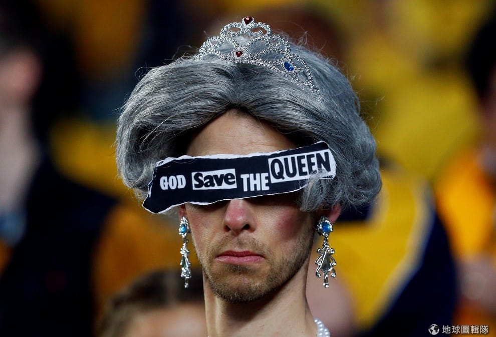 2016年,在澳洲對上英國的球賽上,一名球迷打扮成英國女王伊莉莎白二世的模樣,並在臉上貼著「天佑女王」的字條。