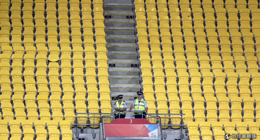 2015年 3月在威靈頓的體育館內,兩名警察被派駐此地負責維安。