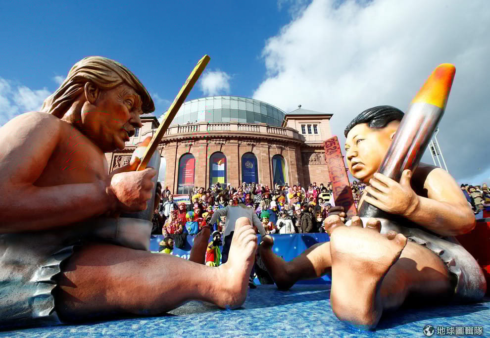 在德國玫瑰星期一嘉年華遊行上,美國總統川普和北韓領導人金正恩的大型花車吸引了眾人的注意。