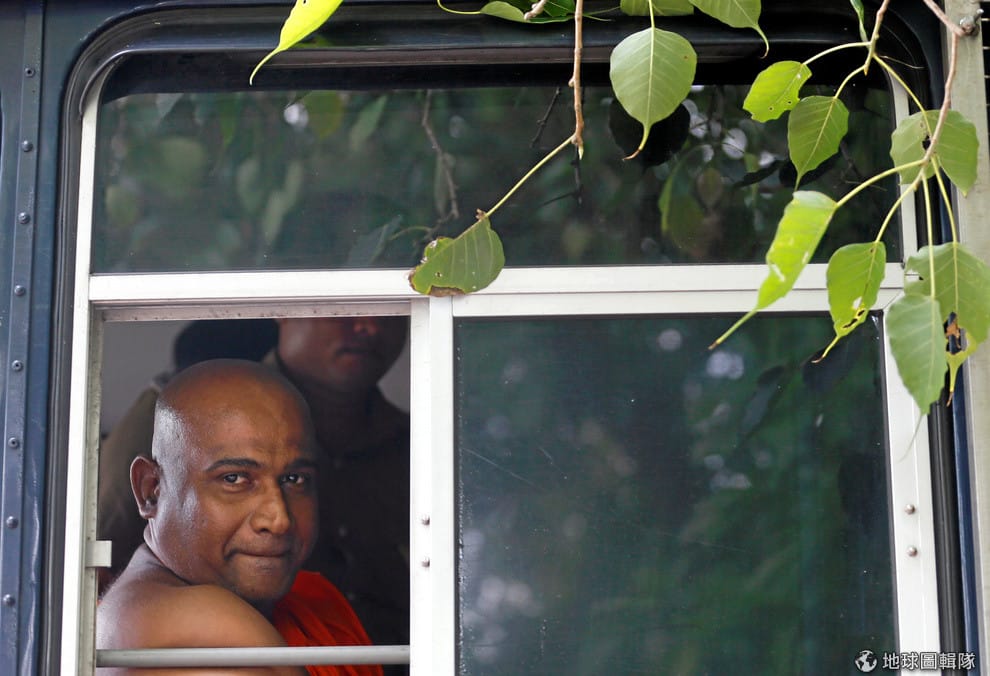 2017年10月2日,一名斯里蘭卡的佛教僧侶在車上望向窗外,他即將被送往監獄。這名僧侶因為率領民眾抗議一周前來斯里蘭卡尋求庇護的31名洛興雅穆斯林難民,而遭到警方逮捕。
