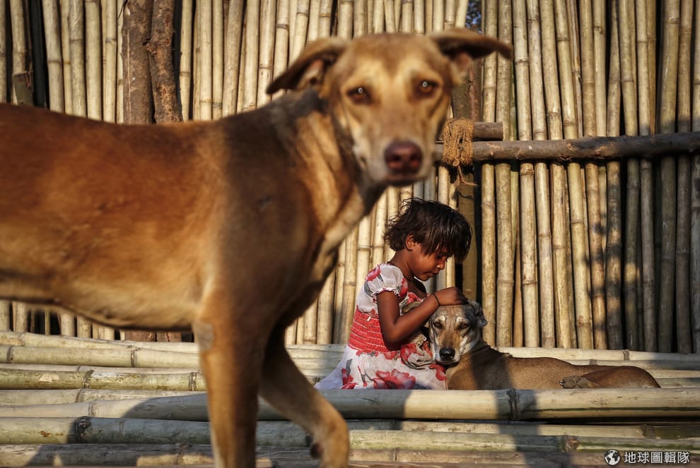 在孟買街頭,一名小女孩正在跟街上的野狗玩。根據研究人員的觀察,當花豹緩緩經過野狗的面前時,孟買的每一隻狗都會開始吠叫。