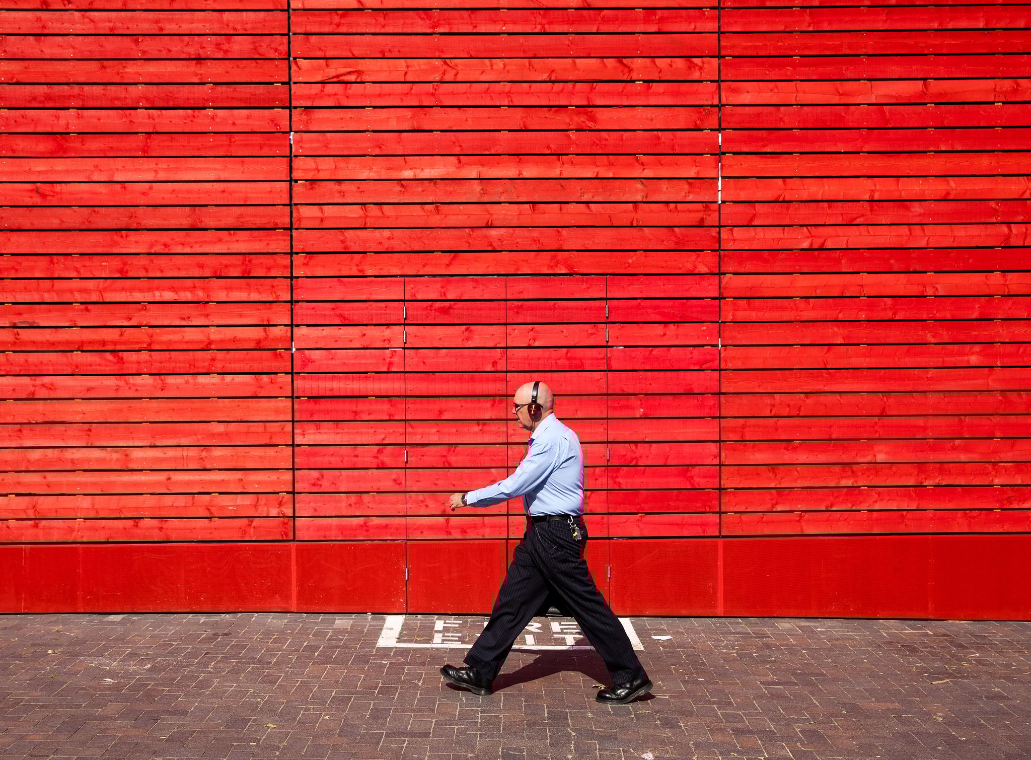 一名男子帶著耳機走在大街上。有民眾認為,英國這項新政策對於家長來說是件好事。