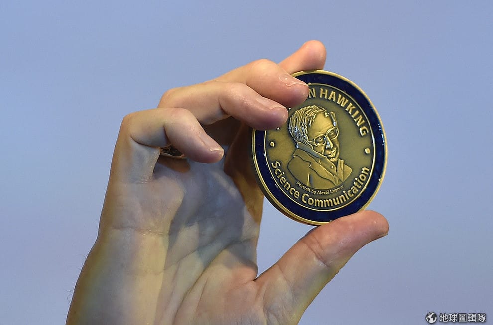 2015年 12月,英國音樂家與天體物理學家布賴恩·梅(Brian Harold May)向媒體展示他的霍金獎獎牌。