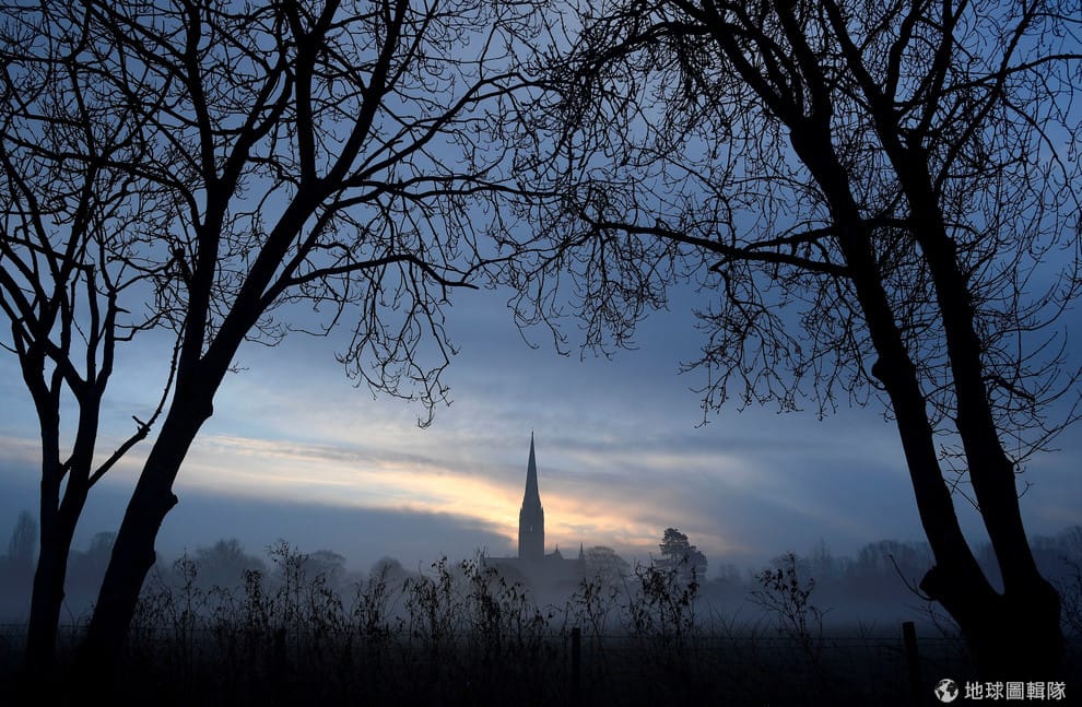 畫面中是位於英國威爾特郡(Wiltshire)索爾茲伯里(Salisbury)市中心的索爾茲伯里大教堂。