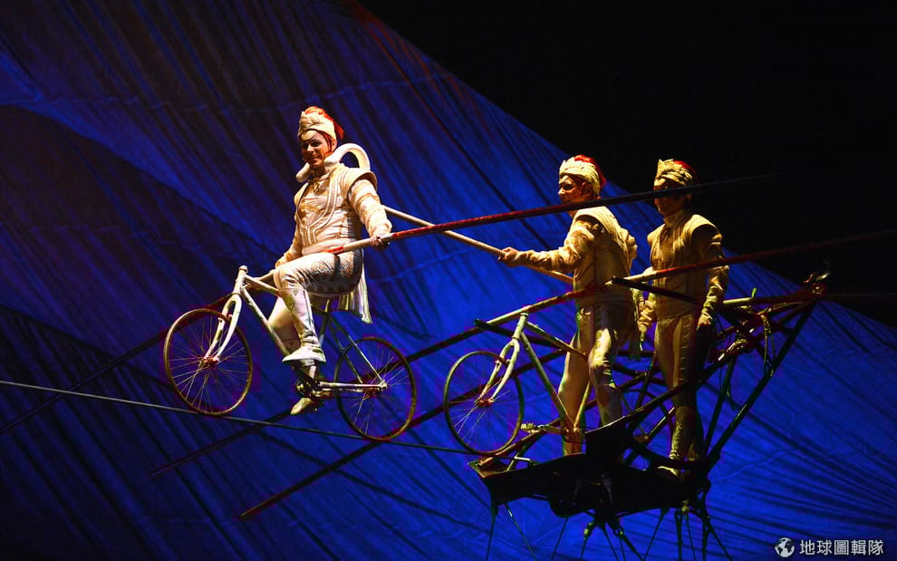 太陽馬戲團以高難度的特技表演聞名,然而,高難度表演也意味著表演過程危險高。圖為 2013年1月,太陽馬戲團在英國皇家阿爾伯特音樂廳的表演。
