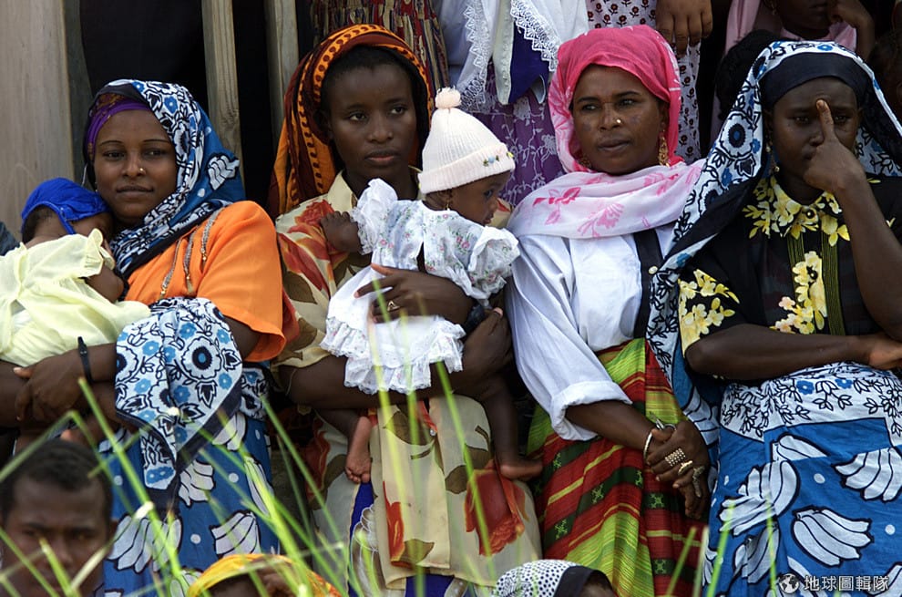 馬約特目前面臨到移民問題,來自葛摩聯盟的移民人數過多,導致當地婦女沒有辦法在島上生小孩。圖為 2001年5月,馬約特的婦女們抱著小孩迎接時任法國總統的席哈克(Jacques Chirac)到來。