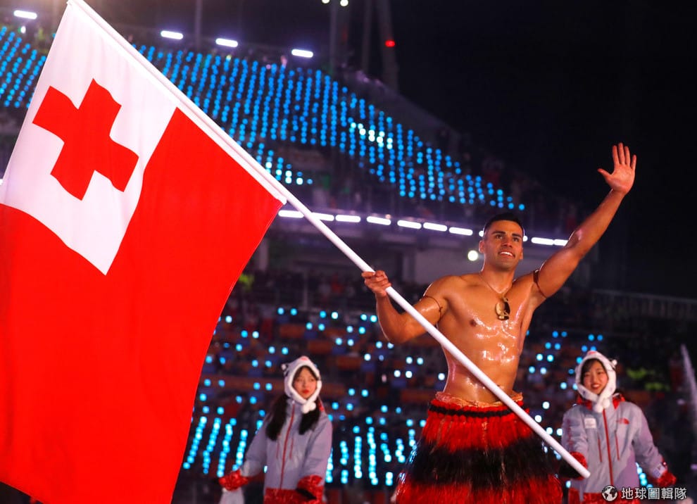 上個月 9號,來自東加的滑雪選手陶法托夫瓦(Pita Taufatofua),高舉東加國旗參加平昌冬奧開幕式。陶法托夫瓦也曾在 2016里約奧運上,同樣只穿一件東加特色的傳統裙裝,裸著上半身以旗手的身分參加開幕式,當時他的身分是東加的跆拳道選手。
