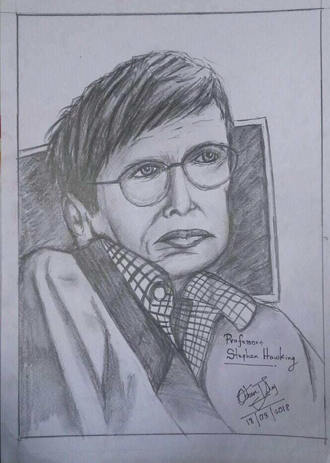 圖為一名網友用鉛筆畫的英國物理學家霍金。研究團隊的心理學家米勒認為,像是物理等特定領域,很少有具代表性的女科學家。