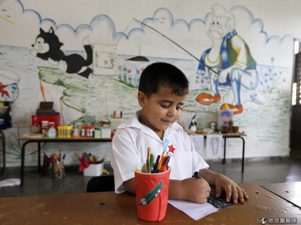 如果今天請你「畫一位科學家」,你會怎麼畫呢?圖為 2009年11月,在古巴首都哈瓦那(Havana),有一名小男孩在課堂上畫畫。