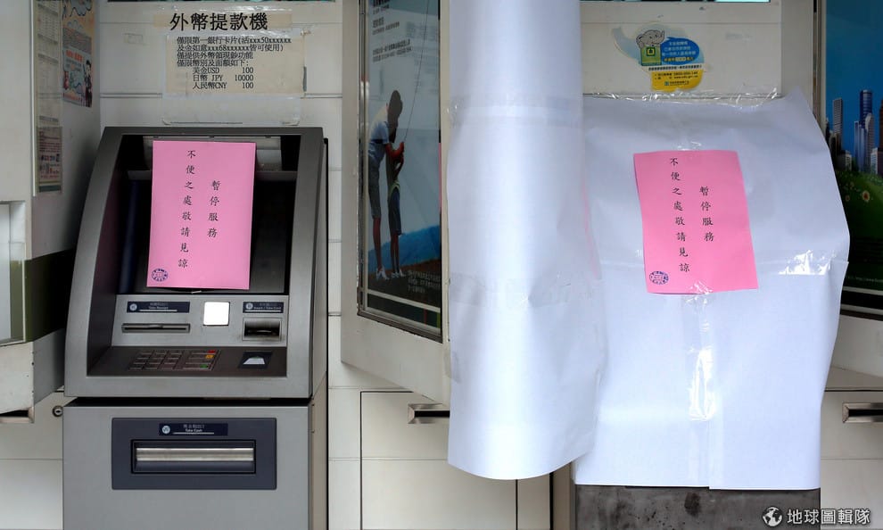 2016年 7月,台灣第一銀行的ATM被貼上暫停服務的標語,這裡當時發生盜領事件。