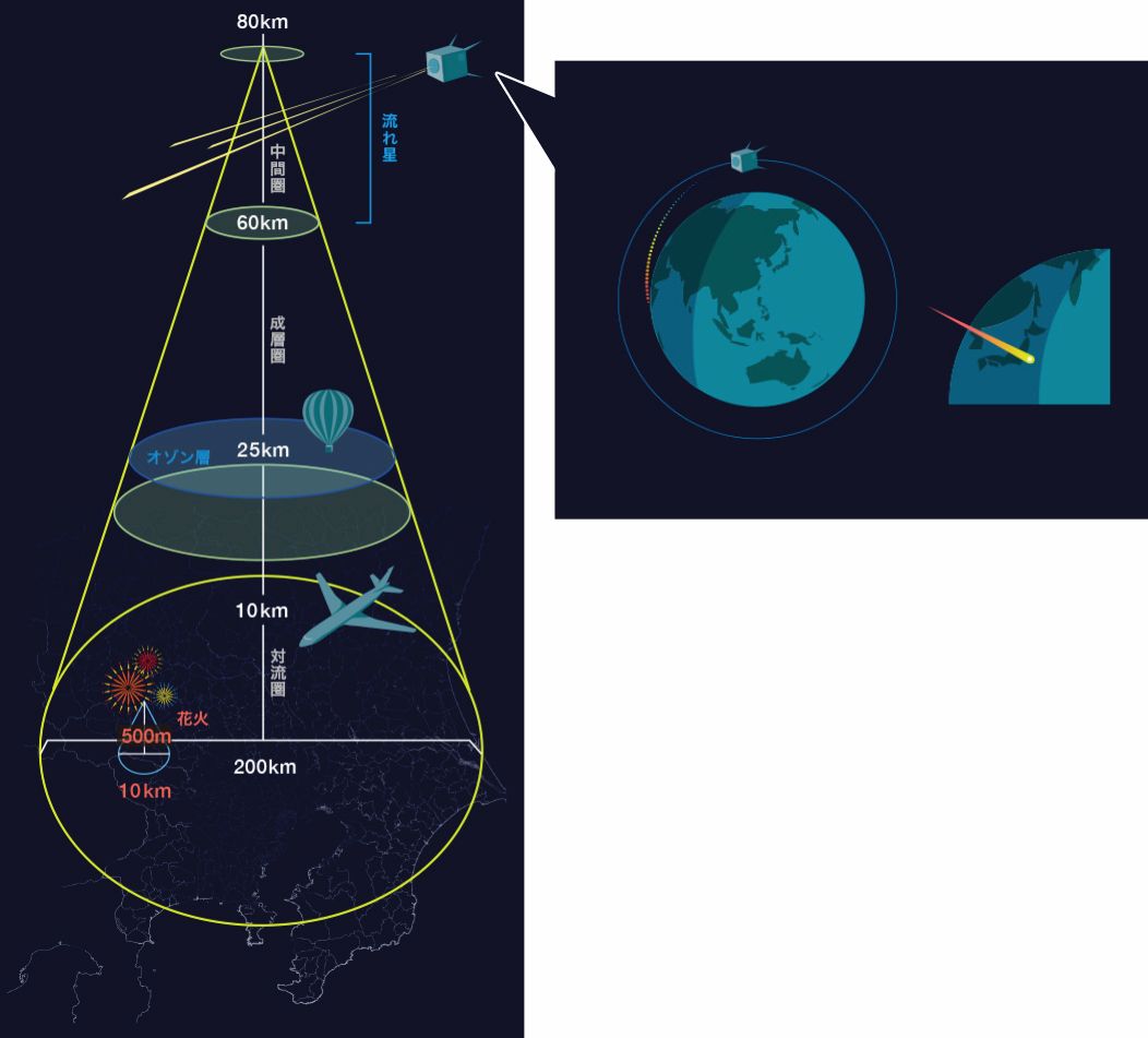 圖即為ALE的迷你衛星如何投放「流星」的示意圖,可以看到這些「流星」會落在 60-80公里高的地方。