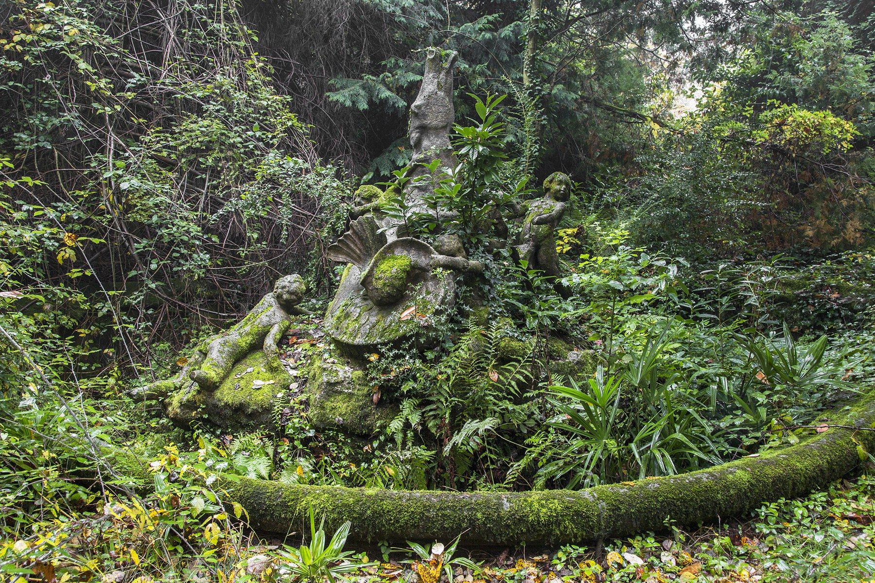 在義大利的一間別墅中,原本一尊華麗的雕像上爬滿了綠油油的青苔。
