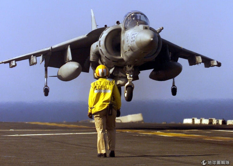 照片中是這次拋下4枚炸彈到大堡礁的美國海軍飛機AV-8B Harrier plane